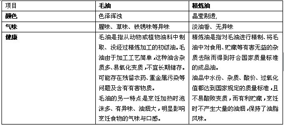 精煉油與毛油的區(qū)別
